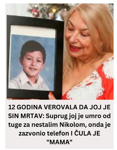 - Priča o škotskoj majci Joyce Curtis i njenom sinu Nikoli je jedna od onih koja podsjeća na snagu vjere, nade i ljubavi koja ne poznaje granice. Gotovo 12 godina, Joyce je vjerovala da joj je sin preminuo, nakon što je Nikola nestao u Europi, ali unatoč gubitku i neizvjesnosti koja je trajala godinama, ona nije gubila nadu. Ova potresna priča postala je simbol nevjerojatne izdržljivosti i nade koja nikada ne nestaje, bez obzira na to koliko dug put može biti. Nikola je napustio Glasgow u potrazi za novim početkom, no ni najmanje nije mogao predvidjeti da će to putovanje dovesti do najtragičnijeg, ali i najčudesnijeg trenutka u njegovom životu.