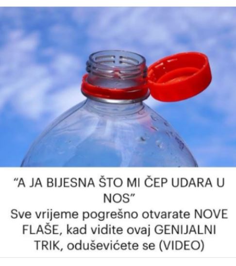 U današnjem članku vam donosimo jedan od trikova koji je posato hit na intrenetu.Naime radi se o platičnoj flaši sa običnim čepom,ali ono što niste znali jest da postoji mnogo jednostavni način kkao da otvorite  a da vam pritome ne smeta.