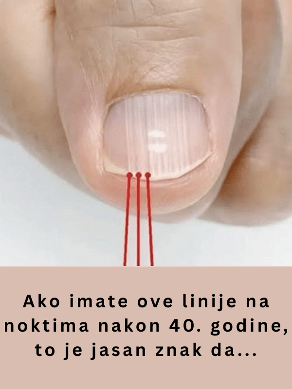 Jedan od najčešćih znakova koji se može pojaviti na noktima su vertikalni grebeni, pruge koje se protežu od baze nokta prema vrhu. Ove linije obično ne predstavljaju ozbiljan zdravstveni problem i najčešće su rezultat starenja organizma. Kako starimo, naši nokti postaju suvlji i grublji, a pojavljuju se i vertikalne linije. Dr. Ivy Lee, dermatologinja, objašnjava da ovo nije razlog za zabrinutost jer su ovi tragovi samo prirodni znak starenja. Međutim, ako promjene na noktima postanu izraženije ili se pojave druge promjene u boji ili teksturi, to može biti signal za ozbiljnije probleme, poput anemije ili kardiovaskularnih bolesti. Dr. Lee savjetuje da se u takvim slučajevima konzultirate s liječnikom.