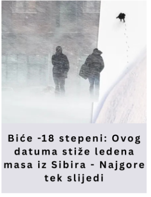 • Prema dostupnim meteorološkim modelima, naredni dani donose naglo i dugotrajno zahlađenje, sa temperaturama koje će se u pojedinim dijelovima spuštati i do –18 stepeni Celzijusa, a lokalno čak i niže. Iako zima na Balkanu nije strana oštrim minusima, ovaj put zabrinjava kombinacija intenziteta, trajanja i dodatnih vremenskih nepogoda koje prate prodor ledene vazdušne mase.