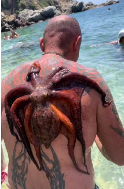 - Dok se opuštao u moru, Kristijan je doživeo potpuno neočekivan i retko viđen trenutak – iz vode je izašao sa hobotnicom čvrsto priljubljenom uz svoja leđa. Bez ikakve najave, ova neobična morska stvorenja odlučila je da ga „prati“ sve do obale. Njeno iznenadno prisustvo izazvalo je razne reakcije kupača – neki su u čudu posmatrali šta se dešava, drugi su panično uz vriske bežali iz vode, dok je mali broj prisutnih pritrčao kako bi Kristijanu pomogao da se oslobodi neželjenog saputnika.