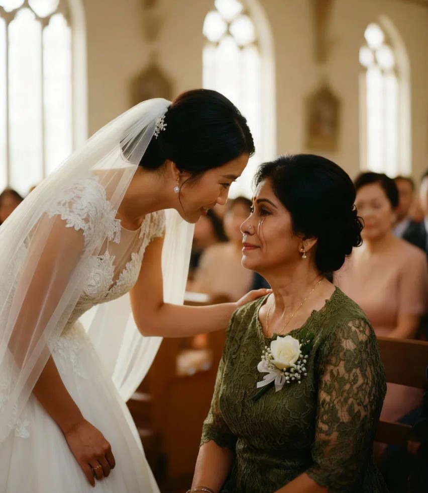 Na dan venčanja, dok je stajala ispred ogledala, njene ruke su drhtale. Pitala se da li će njena skromnost privući negativne poglede, ali je ipak odlučila da nastavi, jer je to bio sinovljev veliki dan.