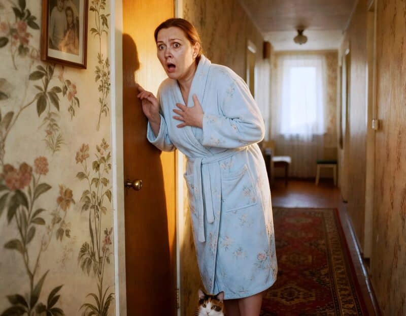 Dok se spremala za tuširanje, pokušavala je pronaći nekoliko minuta za sebe, trenutak mira nakon napornog dana. Topla voda i para brzo su je opustile, ali onda je shvatila da je zaboravila ručnik. Ne razmišljajući mnogo, izašla je iz kupatila, ogrnuta samo laganim ogrtačem, uvjerena da će sve trajati tek nekoliko sekundi.