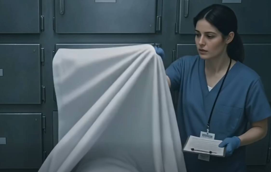 Međutim, te noći nije bilo sve kao obično. Osjećaj nečega neobičnog počeo ju je uznemiravati. Kao da je netko stajao iza nje i gledao je, iako je hodnik bio prazan. Osjetila je prisutnost, nešto gotovo neuhvatljivo, nešto što je nije dopuštalo da mirno nastavi s poslom. Osim toga, nešto je škripalo ispod plahte, poput šuštanja, ali to nije bilo ništa što je mogla racionalno objasniti. Bilo je to nešto što ju je podsjetilo na fiziološke reakcije koje tijelo može pokazivati nakon smrti — grčevi mišića, lagani pokreti, nešto što je već prije viđala.