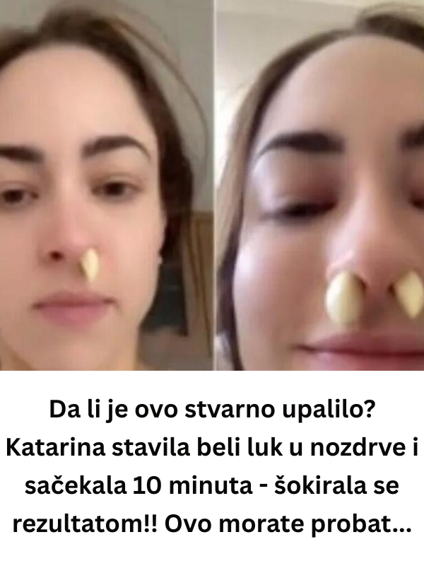 - Jedna neobična metoda za pročišćavanje sinusa izazvala je pažnju korisnika interneta nakon što je Engleskinja Rozalin Katarina, 29-godišnjakinja, odlučila da isproba kućni trik koji se već neko vrijeme širi po društvenim mrežama. Naime, Rozalin je u obje nozdrve stavila po jedan čen očišćenog belog luka, u nadi da će na prirodan način osloboditi svoje disajne puteve i pročistiti sinuse.