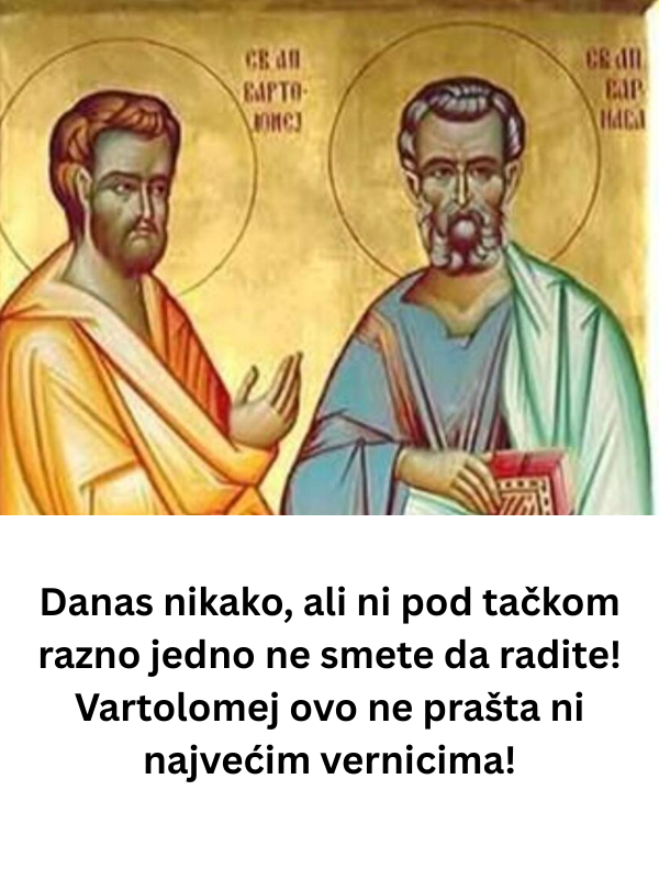 Srpska pravoslavna crkva i njeni vernici danas se prisjećaju jednog od značajnih događaja – prenosa moštiju svetog apostola Vartolomeja. Iako je njegov glavni praznik određen za 24. jul po novom, odnosno 11. jul po starom, julijanskom kalendaru, i ovaj datum zauzima posebno mjesto u crkvenom i narodnom predanju.