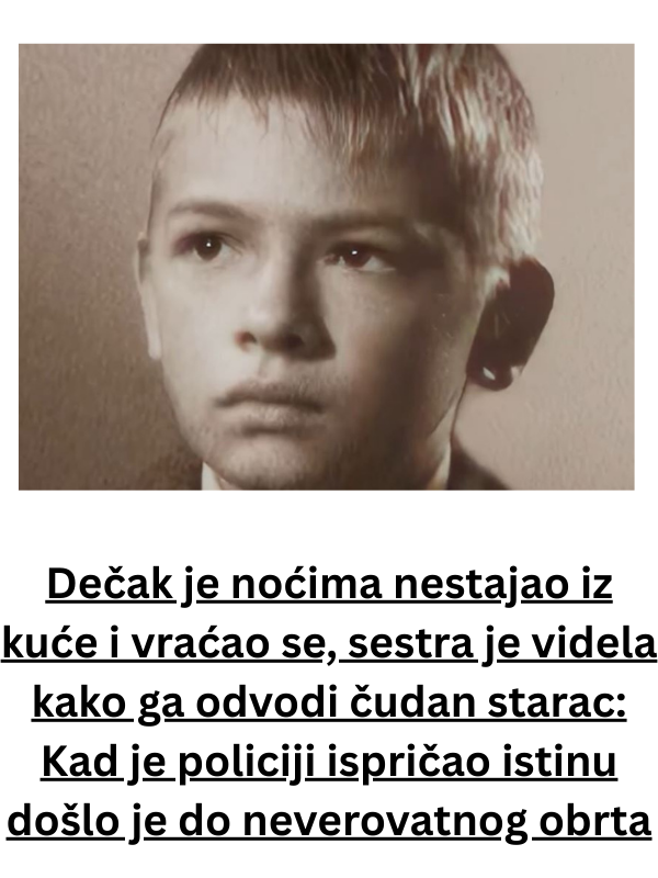 - Roditelji su bili zatečeni, ali su odlučili da preispitaju situaciju. Sledeće noći, Marko je ponovo nestao, a oni su shvatili da nije bilo zaključanih vrata ni tragova u dvorištu. Obuzela ih je panika, pa su pozvali policiju. Kada su inspektori stigli, Marko je bio iscrpljen i bled, ali je odlučio da ispriča svoju verziju događaja. “Starac me vodi do napuštene kuće na kraju sela,” rekao je Marko, otkrivajući nevjerojatnu priču. “On mi pokazuje stari svet, uči me da slušam zvuke koje drugi ne čuju i da vidim stvari koje drugi ne primećuju. On je, zapravo, duh.”