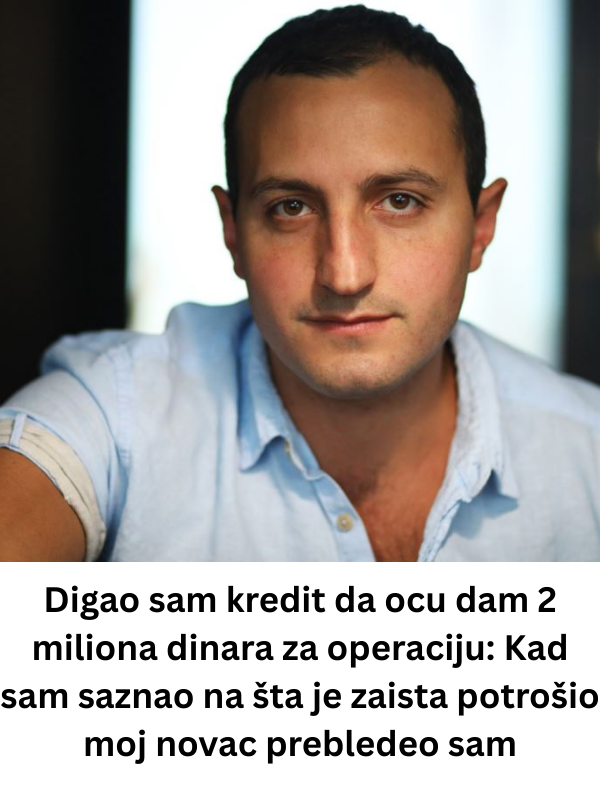 „Nemoj da brineš, sine, sve će biti u redu. Samo mi treba ta operacija, doktori kažu da ne smem da čekam!“ Otac je tih dana imao ozbiljnu potrebu za novcem koji je trebalo da osigura životnu operaciju. Da bi ispunio očevu želju i pomogao mu, njegov sin odlučuje da uzme kredit. „Koliko ti treba?“ pita on, sa tugom u glasu, gutajući knedlu. Dve miliona dinara nisu mala cifra, ali ljubav prema ocu prevladava i brzo donosi odluku. Ubrzo nakon toga, sin odlazi u banku, potpisuje papire, ne razmišljajući o dugoročnoj posledici koja će mu doneti mnogo briga u narednim godinama. Ubrzo je novac stigao, a otac je sve to primio u kešu, obećavajući da neće zaboraviti ovaj trenutak.