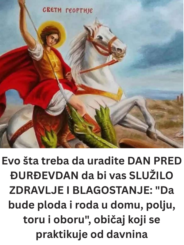 Uoči praznika Đurđevdana, koji Srpska pravoslavna crkva slavi u čast Svetog Đorđa, domaćinstva širom Srbije i regiona pripremaju se prema drevnim običajima koji imaju duboko simbolično značenje. Iako se sam praznik obeležava 6. maja, pripreme počinju dan ranije, a cilj svih tih radnji je jedno – zdravlje, blagostanje i berićet u kući i domaćinstvu.