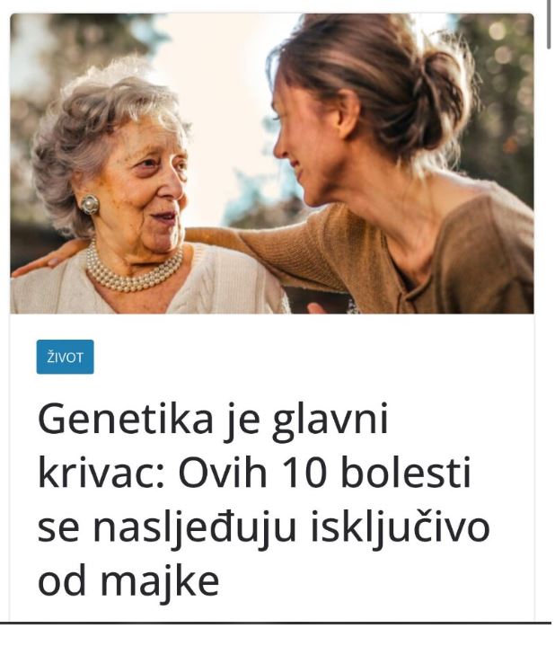 - Još jedno stanje koje se često prenosi po majčinoj liniji je glaukom. Ovo oboljenje oka može dovesti do postepenog gubitka vida, a u težim slučajevima i do sljepoće. Glaukom češće pogađa žene nego muškarce, a određene genetske mutacije jasno su povezane s njegovim razvojem. Problem kod glaukoma je što dugo može biti bez simptoma, zbog čega mnogi saznaju za bolest tek kada je već uznapredovala. Redovni pregledi kod oftalmologa zato nisu preporuka, već nužnost, posebno za žene koje u porodici imaju istoriju ove bolesti.