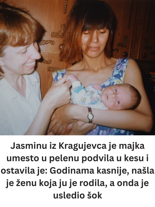 Jasmina Stojanović žena iz Kragujevca nosi životnu priču koja je iako bolna postala snažan simbol oproštaja, razumevanja i plemenitosti. Kao beba stara samo četiri meseca, bila je ostavljena – upakovana u kesu, predata Centru za socijalni rad, bez ičega osim par minđuša i lutke koja plače. Njena biološka majka, tada devetnaestogodišnja devojka, nije imala ni osnovne uslove za život, ni podršku, ni novac. U tom trenutku, čin napuštanja bio je posledica očaja i nemoći.