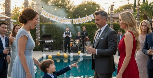 U dvorištu je nastala tišina koja je bila glasnija od muzike koja je maločas odzvanjala. Daniel je problijedio, žena u crvenoj haljini nije znala kuda da pogleda, a gosti su pokušavali skrenuti pogled kao da su slučajno ušli u tuđi život. Laurino srce lupalo je kao da pokušava pobjeći. U tih nekoliko sekundi, čitava istina — ona koju nije željela, ali koju je morala čuti — stala je u djetetove riječi.
