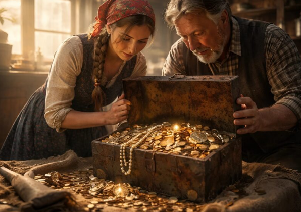 „Tata, moraš ovo vidjeti,“ rekla je, pružajući mu kutiju. Otac je oprezno otvorio kutiju, a metal je zaškripao dok je otpuštao poklopac. Unutra je bila zbirka starinskog nakita: zlatni prstenovi, masivni lanci, naušnice s potamnjelim kamenjem, te na dnu zamotuljak sa starim kovanicama i požutjelim dokumentima s pečatom. Ispostavilo se da je na toj zemlji, prije više od stotinu godina, živio bogati trgovac koji je, u nemirnim vremenima, sakrio svoje blago u nadi da će se vratiti. Međutim, nikada se nije vratio, a njegovo bogatstvo ostalo je skriveno ispod zemlje.