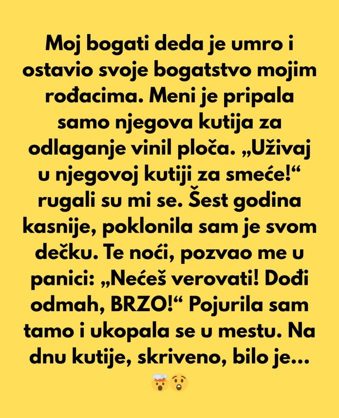 Kako piše RTS, u domaćim pričama o nasledstvu, često se naglašava da ono što se prenosi s generacije na generaciju nije samo materijalno. Tradicija, sećanja i simbolična vrednost predmeta često imaju veću težinu od imovine. U ovom slučaju, stara kutija za vinile postala je simbol ne samo porodične istorije, već i mosta između generacija.