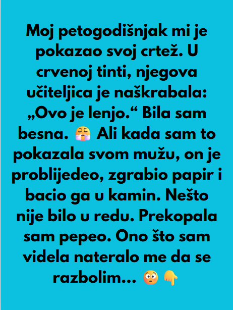 U trenutku kada je majka počela kopati kroz pepeo i otkrila skrivenu poruku, počinje se razotkrivati stvarna istina koja mijenja cijeli njen svijet. Poruka na poleđini crteža, napisana rukopisom njenog muža, otkriva šokantnu istinu o njegovim izvanbračnim vezama i obmanama. To nije bila samo poruka namijenjena djetetu, već jasna prijetnja upućena njoj. Shvatila je da su svi ti “kasni izlasci” i “telefonski pozivi zbog posla” zapravo bili laži, da je njen muž bio u vezi s nekim drugim, a ta osoba sada koristi njenog sina kao kanal za prijetnje i manipulaciju.