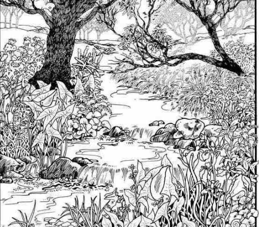 Na prvu, na slici se čini da gledamo crno-bijeli pejzaž, ispunjen granama, lišćem i oblicima koji podsjećaju na prirodu. Cjelokupna scena izgleda jasno i skladno, dok u pozadini među granama i sjenama krije lice žene. Taj motiv je toliko vješto uklopljen u okolinu da ga većina ljudi u početku ne primijeti. Tek nakon dužeg posmatranja, detalji se počinju slagati i lice postaje jasno. Na prvi pogled, sve što ljudi vide su drveće i šuma, a ono što je skriveno ostaje neprepoznato.