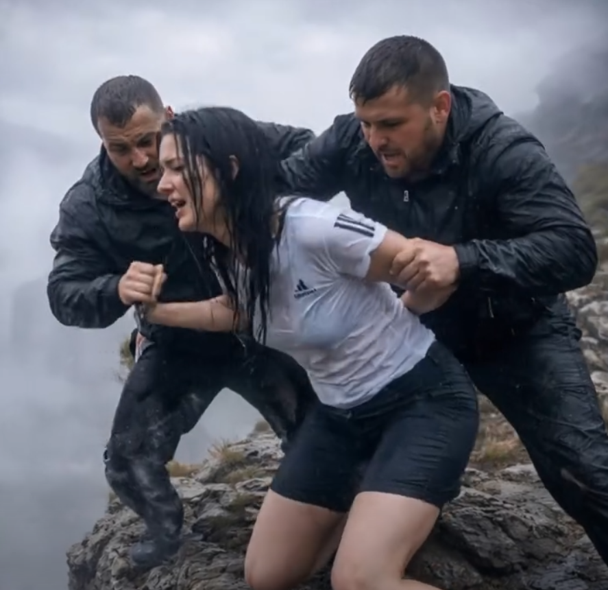 Kada su stigli do stene, sve se brzo promenilo. Vetar je bio jak, magla je prekrivala okolinu, a ona je stajala na ivici, diveći se pogledu. Tada je osetila da nešto nije u redu – okrenula se, a muža više nije bilo. Umesto njega, tu su stajali trojica muškaraca, svi obučeni u crne jakne. Bio je to trenutak u kojem je sve stalo. Zatvorenih očiju, slušala je samo njihove korake i shvatila da nešto strašno sledi. Prvi je uhvatio za ruku, drugi ju je gurnuo, a treći je držao tako da nije imala mogućnosti da pobegne. “Uživaj u paklu. Pozdrav od tvog muža”, rekao je jedan od njih, pre nego što je telo žene palo sa visine.