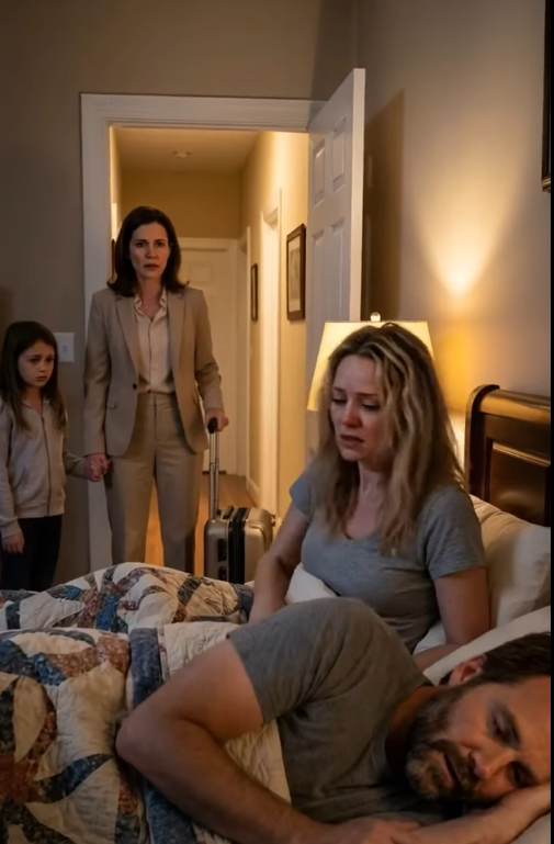U kući je vladala tišina, ali svjetlo iz spavaće sobe bilo je upaljeno. Čuli su se prigušeni glasovi. Srce joj je počelo ubrzano kucati dok je polako koračala hodnikom. Kćerka je išla uz nju, i dalje nesvjesna bilo kakve opasnosti, stežući poklon. Kada je odškrinula vrata, prizor ju je zaledio. Na njihovom krevetu ležao je njen muž, a pored njega žena. Nepomična, spuštenog pogleda, strana.