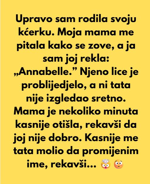 • Majčino lice je problijedilo, a oči su joj se stisle kao da su je pogodile riječi koje nikada nije htjela ponovo čuti. Otac je izgledao kao da se bori s vlastitim dahom, a potom je majka naglo ustala i otišla. U tom trenutku, mlada majka nije shvatala zašto. U glavi su joj se rojila pitanja – zar je ime važno koliko i bebin plač, zar nije svaka riječ lijepa kada označava novi život?