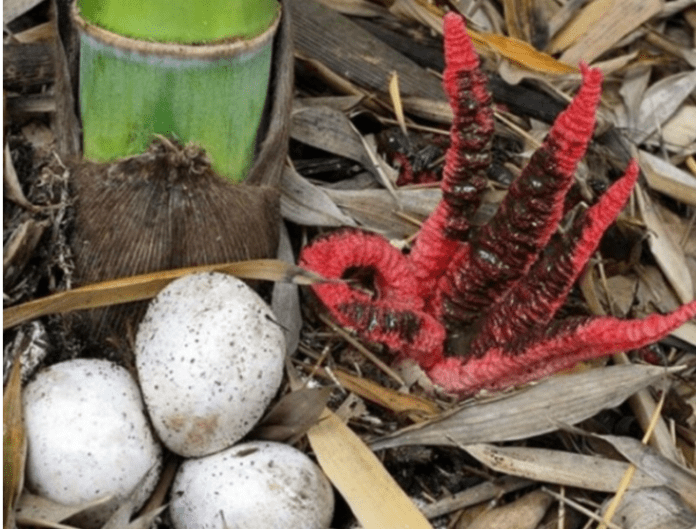 Nakon što je, uz podrhtavanje ruku, fotografirala neobičnu pojavu, krenula je istraživati na internetu. Ubrzo je otkrila da je to zapravo rijetka gljiva poznata pod imenom Anthurus archeri, odnosno „đavolji prsti“. Ova gljiva, koja je porijeklom iz Australije, ali se proširila i na druge dijelove svijeta, na prvi pogled izgleda zastrašujuće. Izgleda kao bijelo jaje koje je zakopano u zemlji, a kad sazri, puca i iz njega izrastaju crveni izdanci nalik prstima, prekriveni sluzi koja ispušta miris truleži. Ovaj miris zapravo ima funkciju privlačenja insekata koji raznose spore gljive, omogućujući joj tako opstanak.
