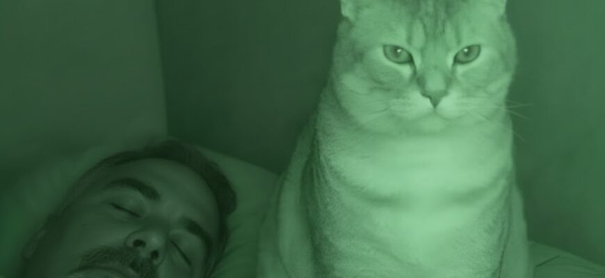 Nakon što je veterinar potvrdio da je sa mačkom sve u redu, žena je odlučila da postavi kameru sa noćnim režimom u spavaću sobu. Snimak je otkrio nešto što je u početku bilo zbunjujuće, ali ubrzo se pokazalo da je mačka jednostavno imala problem sa muževim hrkanjem. Svaki put kad je muž počeo da hrče, mačka bi se približila njegovom licu, pažljivo stavila šapu na njegova usta i time zaustavljala zvuke hrkanja. Bilo je jasno da nije bilo ničeg agresivnog u njenom ponašanju — to je bila njezina tiha reakcija na zvukove koji su je smetali.