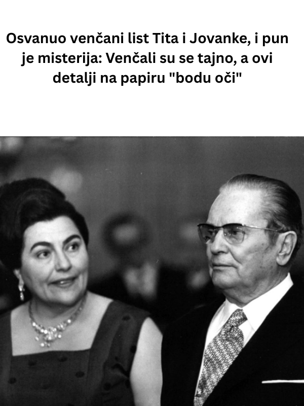 Dokument koji je nedavno dospio u javnost, venčani list Josipa Broza Tita i Jovanke Budisavljević, izazvao je pravu buru komentara i otvorio niz pitanja. Tajni brak, netipični detalji i brojna neslaganja u dokumentima i danas bude radoznalost i sumnje.