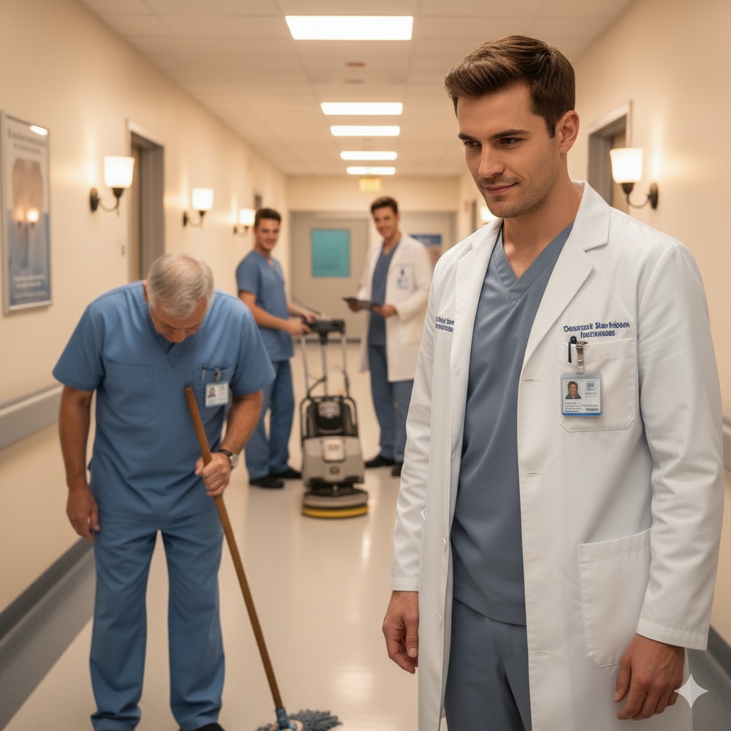 • U jednoj bolnici, pored kreveta teško bolesnog oca jednog uglednog ljekara, sjedio je domar Franjo. Njegovo ime, možda nije bilo poznato mnogima, a zasigurno nije privuklo pažnju ostalih zaposlenih. Držao je staru, izlizanu zbirku pjesama u ruci, dok je drugom rukom nježno pridržavao ruku pacijenta. Franjo nije bio ljekar, nije imao prestižnu poziciju, ali njegova prisutnost u tom trenutku bila je neprocjenjiva. Dr. David, sin starca, gledao je prizor s vrata. Ono što je vidio duboko ga je potreslo. Domar, čovjek kojeg je tog istog dana ponižavao pred svojim stažistima, sada je čitao poeziju njegovom ocu s tolikom nježnošću i smirenošću, kao da je najbliži član obitelji.