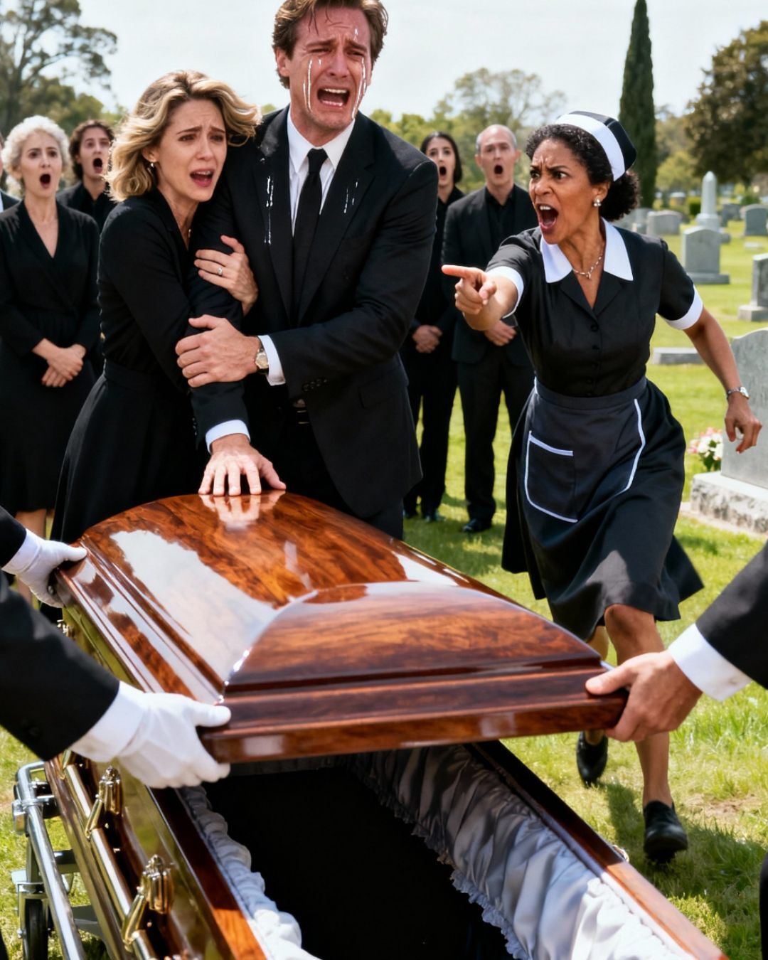 - Međutim, iznenada, u trenutku kada kovčeg počne spuštati u grob, uslijedilo je panično zapomaganje: “OTVORITE TAJ KOVČEG ODMAH!” Rosa, kućna pomoćnica koja je godinama bila uz Helen, ulazi u groblje, zadrhtala i uplakana, ali s nepopustljivim glasom. U njenim riječima leži šokantna istina: “Vaša majka je živa, gospodine Andrew! Taj kovčeg je prazan!” U tom trenutku, cijela sahrana postaje drama koja će sve zauvijek promijeniti. Andrew je u šoku, dok Melissa reagira panično, ali iz bijesa, ne zbog tuge, optužujući Rosu za zablude i pokušavajući umanjiti njen kredibilitet.