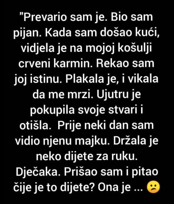 U želji da vidim Anu, pitao sam gdje je. Njen odgovor bio je potresan: Ana je preminula tijekom poroda. Ovaj mali dječak je moj sin. Ana je bila tri mjeseca trudna kad me napustila. Trenutno maleni stanuje kod mene, a od Ane se nikad nisam maknuo.