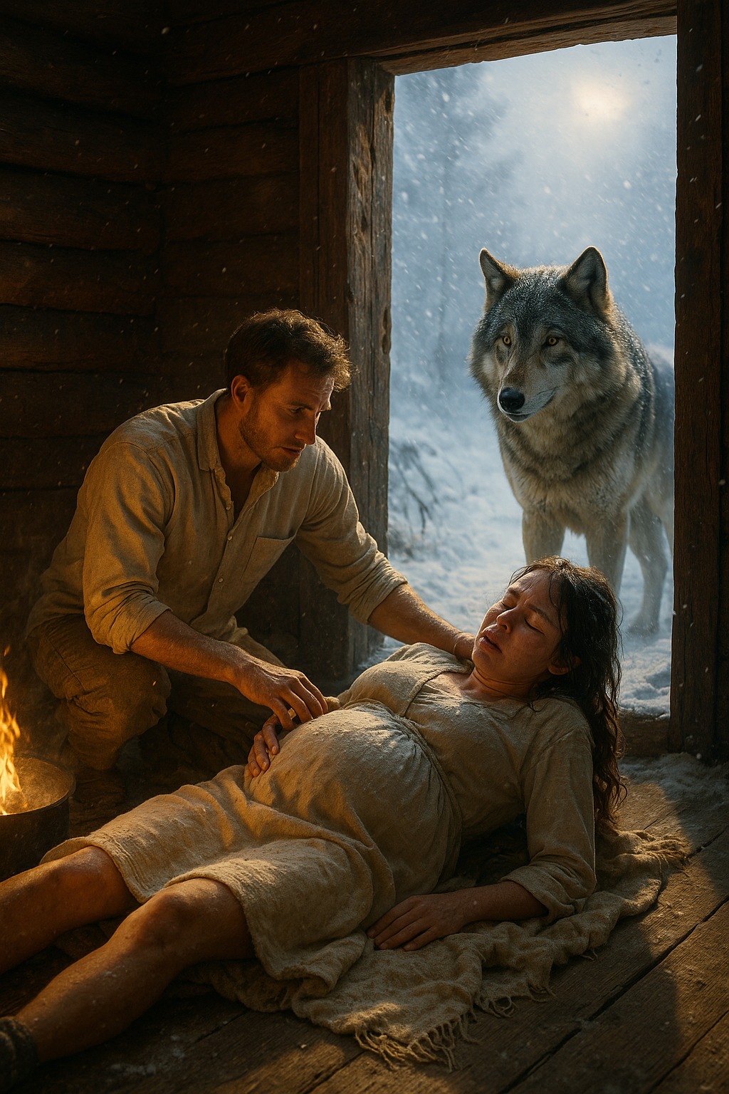 Kako je trenutak prolazio, beba je došla na svijet, a Emma je jedva izdahnula, sretna što je dijete živo. Luka je podigao novorođenče, a tada je shvatio – vuk nije bio prijetnja, već je stajao vani, kao da ih je čuvao. Iako su proveli noć u kolibi, vuk je ostao na svom mjestu, ne pokušavajući ništa, nego kao zaštita od vanjskog svijeta.