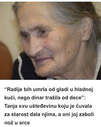 - I dok sjedi u svom skromnom stanu, s malom penzijom koja jedva pokriva račune, Tanja i dalje nosi u sebi snagu. Jer, kako kaže: „Moja ljubav prema njima nikad neće nestati, ma koliko me boljelo. Samo želim da Bog bude uz njih kad već ja ne mogu.“