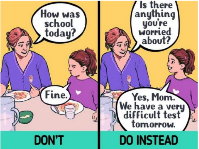 Jedna od najčešćih grešaka koju roditelji prave jeste postavljanje općih pitanja. Pitanje poput „Kako je bilo u školi?“ često ostane bez pravog odgovora jer je preširoko. Dijete ne zna odakle da počne, pa bira najlakši izlaz – kratko „dobro“ ili „okej“. Mnogo bolji pristup su konkretna i promišljena pitanja koja djetetu daju smjer i prostor da ispriča priču. Takva pitanja ne traže tačan odgovor, već potiču razmišljanje i emocije.