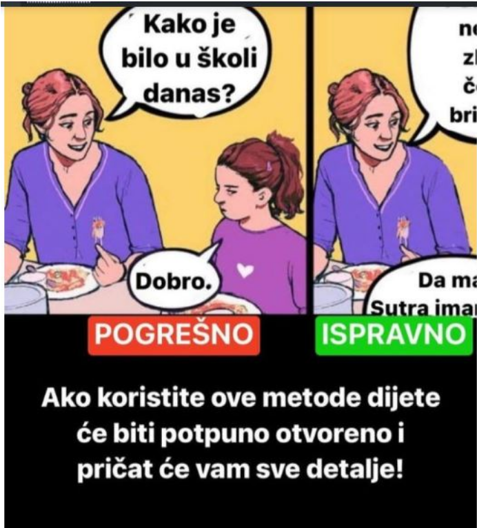 • Slične preporuke mogu se pronaći i u smjernicama koje objavljuju domaće obrazovne institucije i savjetovališta za roditelje, gdje se naglašava važnost svakodnevnog razgovora bez pritiska i osude. Razgovor nije ispit, već povezivanje, poručuju stručnjaci iz prakse koji rade s djecom i porodicama širom regije.