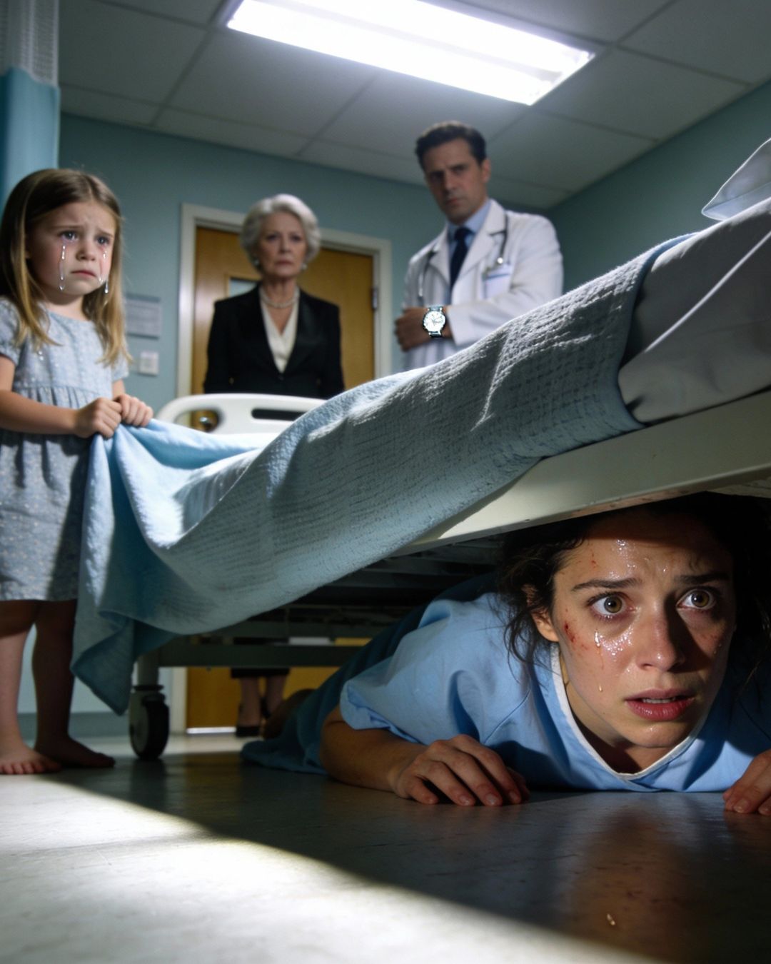 Instinkt je preuzeo kontrolu. Kada su se koraci u hodniku približili, poslušala je kćerku. Spuštanje s kreveta bilo je bolno, ali strah je bio jači. Zavukla se ispod kreveta baš u trenutku kada su se vrata otvorila. Sa poda je vidjela samo obuću i rubove mantila, ali je čula svaku riječ.