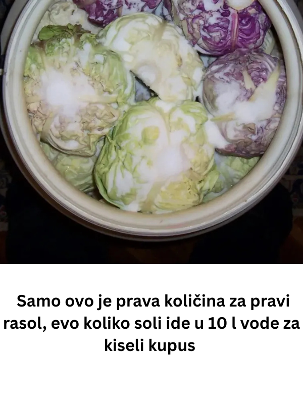- Najvažnije pitanje koje muči početnike jeste koliko soli dodati u rasol. Sol je ključna jer čuva kupus od kvarenja, usmjerava proces fermentacije i daje mu prepoznatljiv okus. Ako je premalo soli, kupus može omekšati i poprimiti neugodan miris, a ako je previše, izgubit će svoju prirodnu aromu i postati pretjerano slan. Optimalna mjera, potvrđena iskustvom generacija, glasi: na 10 litara vode ide 400 grama soli. Tako jednostavno pravilo osigurava da kupus ostane čvrst i ukusan, bez bojazni da će se nešto pokvariti.