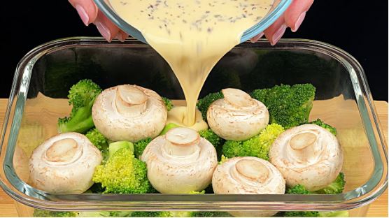 Brokula se najprije blanšira desetak minuta, dok se u tavi pirjaju gljive s maslacem, maslinovim uljem, vlascom i češnjakom. Smjesa se zatim spaja s umućenim jajima, mlijekom, jogurtom, brašnom, praškom za pecivo, začinima i naribanim sirom. Sve se to izlije preko brokule i gljiva koje su prethodno složene u posudu za pečenje. Povrh svega se dodaju krušne mrvice i još sira, pa se jelo peče oko 40 minuta na 180 stepeni.