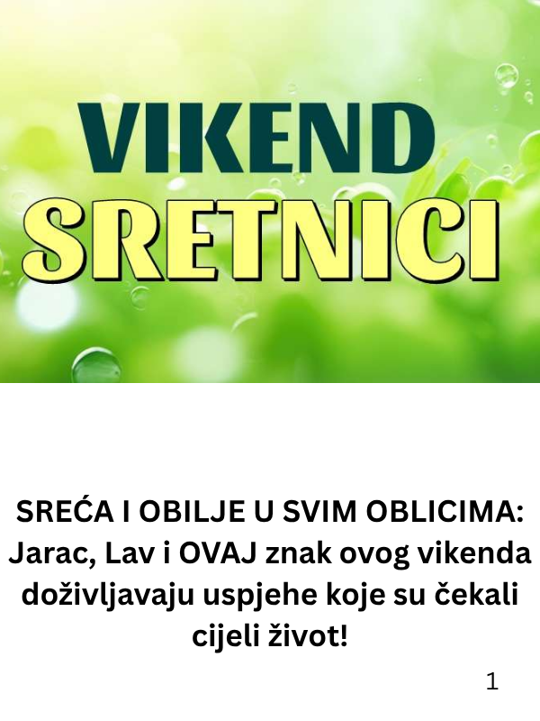 • Ovaj vikend donosi posebnu energiju koja je više od obične sreće – to su trenutci kada život pokloni priznanje, postignuće i unutarnji mir koji dolazi s dubokim zadovoljstvom. Ova tri znaka doživljavaju ključne trenutke koji će značajno promeniti njihove živote, jer je sada vreme kada se sve čeka isplaćuje, i to neočekivano i u potpunosti.