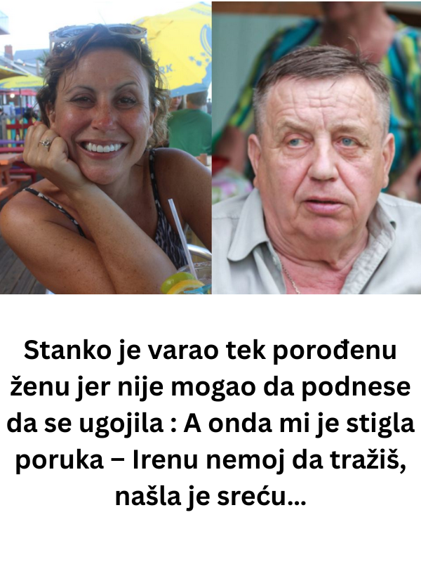 Irena je pronašla izlaz, ali tiho. Otišla je. Uzela je sve što je bilo njeno, uključujući deo njenog srca koji je voleo Stanko, ali koji je sada morao ostaviti iza sebe. Kada je došao kući, vrata su bila tiha. Kolica su nestala, u ormaru nisu bile njene stvari. Na stolu je stajala poruka: „Nemoj da me tražiš. Irenu više ne poznaješ. Našla je svoju sreću. Brini o sinu bolje nego što si brinuo o meni.“