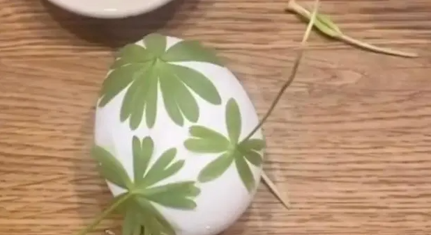 Jaje se najprije pažljivo opere, da se ukloni masnoća i nečistoće – to je osnov za uspješno prijanjanje biljnog uzorka.Dok je jaje još mokro, položi se odabrani listić – može to biti djetelina, peršun, paprat, bilo šta s izraženom strukturom.Jaje se zatim pažljivo uvije u komad najlonske čarape, tako da list ostane čvrsto priljubljen uz ljusku. Čarapa se zategne i veže koncem.