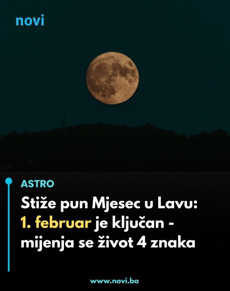 U današnjem članku pišemo o Punom Mjesecu koji dolazi 1. februara, a koji će imati snažan utjecaj na četiri astrološka znaka: Lavove, Vodolije, Bikove i Škorpije.