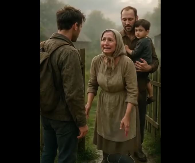 Stajala je u bašti, sa maramom na glavi, držeći kantu vode. Kada ga je spazila, kanta joj je ispala iz ruke i razlila se po zemlji. Gledali su se nekoliko sekundi — duga, teška tišina između njih. Onda je izgovorila, gotovo bez glasa: