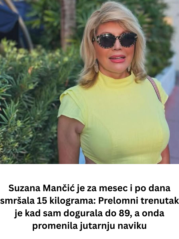 - Suzana Mančić je kroz svoju karijeru bila poznata po tome što je uvek vodila računa o svom izgledu, ali kao i mnogi od nas, došla je do trenutka kada je postala svestan problema sa kilogramima. Prelomni trenutak za nju dogodio se kada je stala na vagu i videla broj koji je, kako kaže, „potpuno otreznio“. „Dogurala sam do 89 kilograma, to je već opasno blizu 90. A gde je 90, tu je i 100“, priznala je Suzana, govoreći o trenutku kada je shvatila da mora da preduzme nešto. Fotografije sa jedne svadbe, na kojima je bila nezadovoljna svojim izgledom, dodatno su je podstakle da donese odlučujući korak.