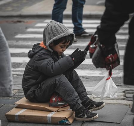 Na hladnom trotoaru, sa poderanom jaknom i prljavim licem, pružao je ruku za komad hljeba. Ljudi su prolazili pored njega, noseći skupe torbe i kapute, rijetko ko bi se zaustavio. Njegov glas, tih i drhtav, molio je: