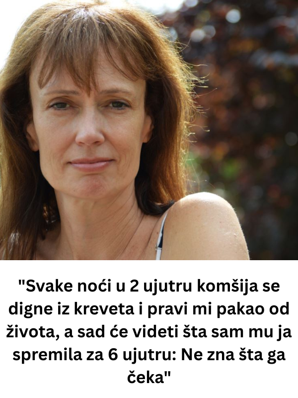 - Njen komšija iz stana iznad razvijao je ritual koji je postao izvor nesanice i frustracije – šetnje i glasne televizijske programe u dva ujutru.