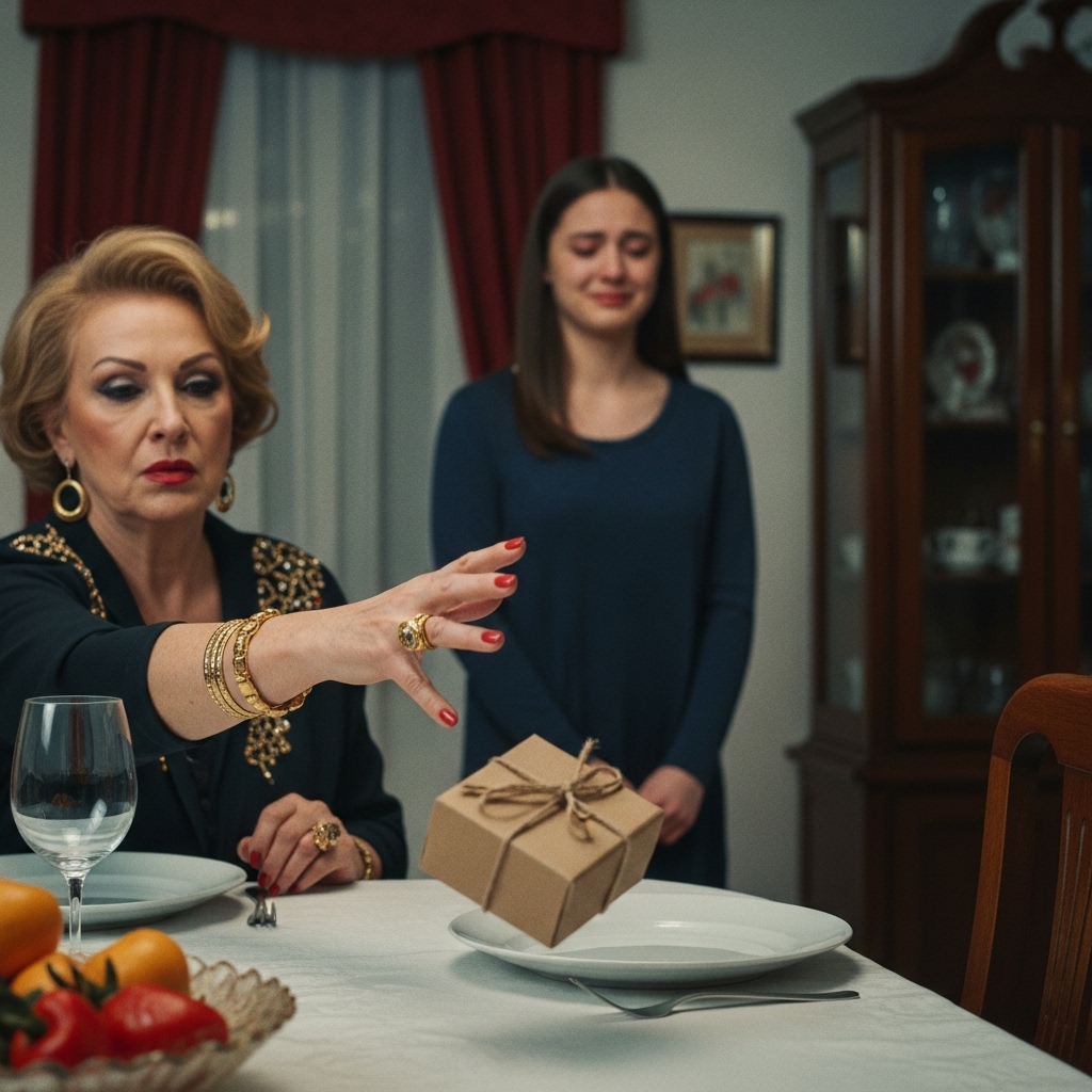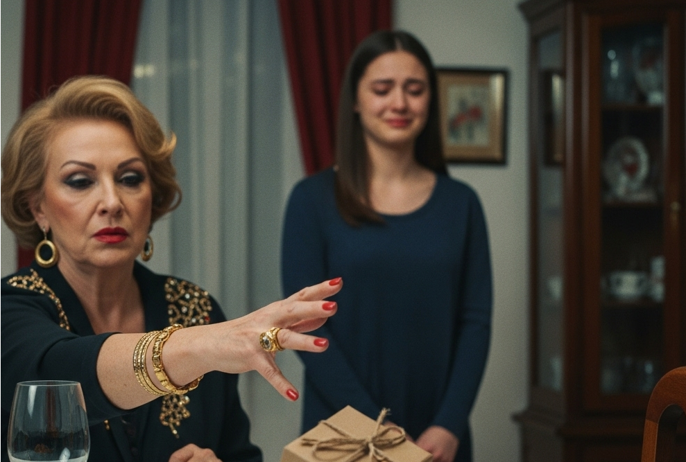 Na Zlatin rođendan, dok su svi gosti dolazili sa skupim darovima, Emina je donela poklon u maloj kartonskoj kutijici. Zlata je bila prezriva, bacila je poklon u smeće, ne shvatajući koliko žrtve se kriju iza takvog poklona. Emina je prodala jedine uspomene koje je imala od svojih preminulih roditelja, prstenje koje je nosila sa sobom kao najvredniju stvar na svetu, kako bi kupila poklon za ženu koja ju je ismijavala i omalovažavala.