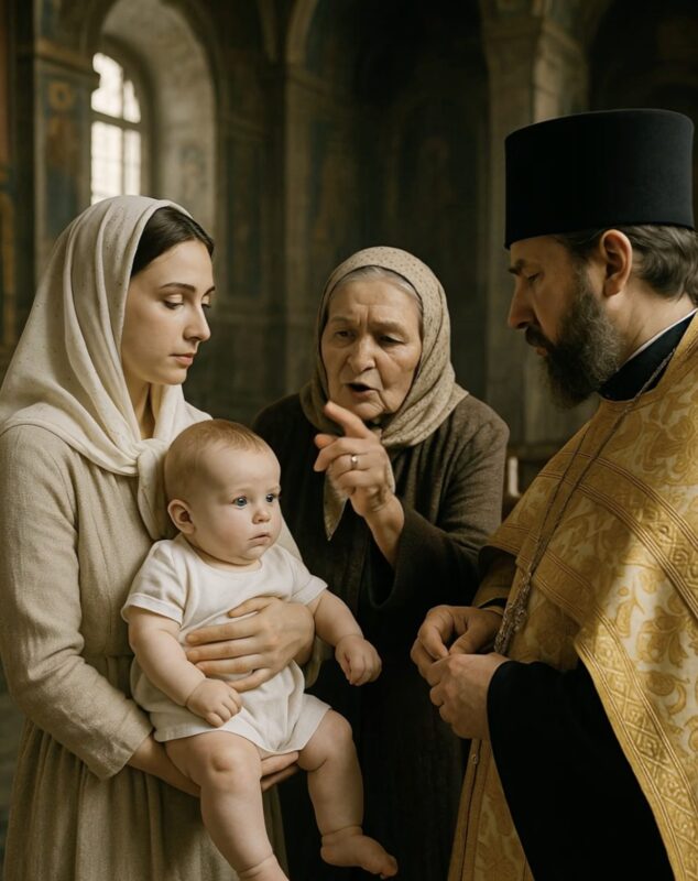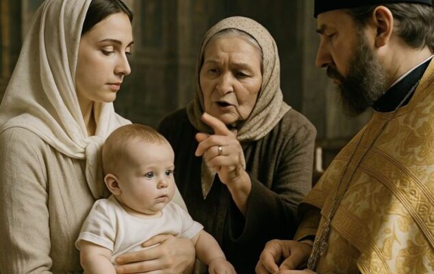 Mlada žena nije odgovorila niti jednim jedinim glasom. Samo je čvršće privila sina, svjesna da bi u toj nervozi mogla posrnuti ili ispustiti dijete. Disanje joj je postalo plitko, ali je šutjela, jer je osjećala da se svaka riječ može pretvoriti u novi povod za napad. Svećenik je u tom trenutku polako zatvorio knjigu, a lice mu se smračilo poput neba pred oluju.