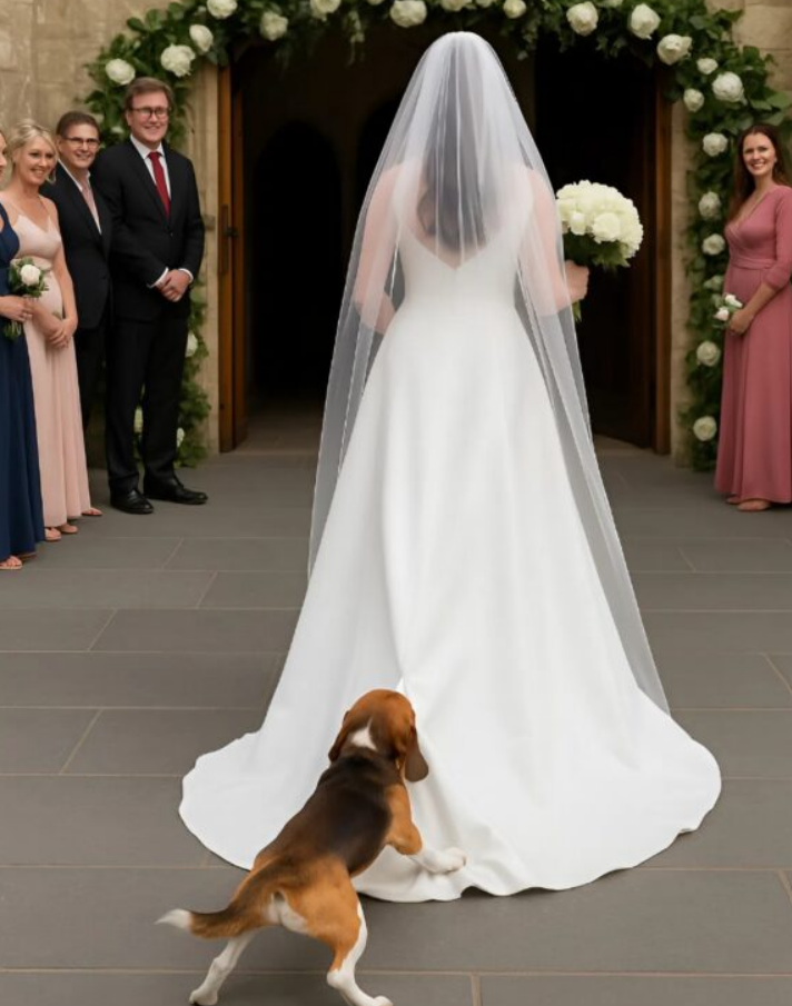 Sve je počelo s opuštenim i svečanim ozračjem. Gosti su uživali u piću, smijehu i razgovorima, a mlada je krenula prema oltaru pod očima svojih voljenih. I dok su svi razmišljali o ljepoti ceremonije, ništa nije moglo naslutiti nadolazeći šok. Pas mlade, Buster, iznenada je zgrabio rub haljine i počeo povlačiti, što je izazvalo zabunu među gostima. Na početku je većina mislila da pas jednostavno pokazuje uzbuđenje ili želju za igrom, no ubrzo je postalo jasno da situacija nije tako jednostavna. Pas je postajao sve uznemireniji, a mlada nije mogla napraviti ni jedan korak bez da je Buster zadrži. Iako je pokušavala smiriti psa i nastavila hodati, nije bilo moguće ignorirati očite znakove stresa i uznemirenosti koje je pas pokazivao.