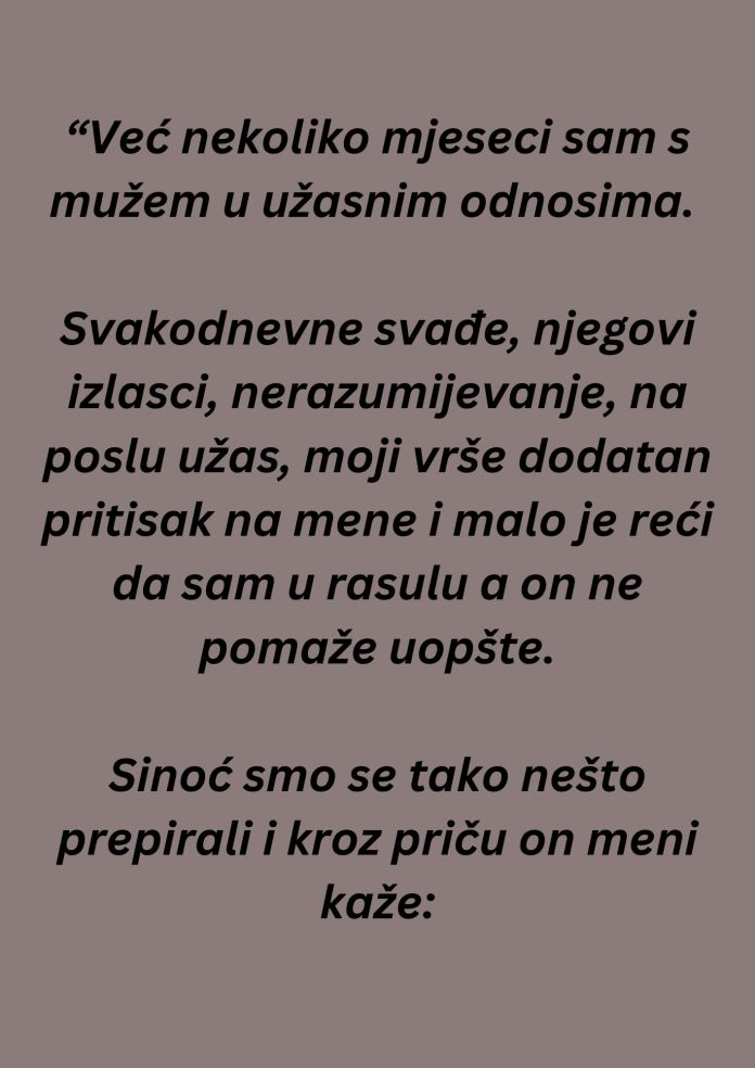 U današnjem članku donosimo priču koja oslikava emocionalni i psihološki slom žene suočene s ozbiljnim bračnim problemima, izdajom i dubokim osjećajem nemoći.