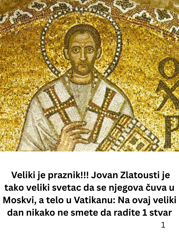 - Srpska pravoslavna crkva i njeni vernici svake godine uoči ovog praznika razmišljaju o značaju Svetog Jovana Zlatoustog, čoveka koji je u istoriji ostavio trag ne samo svojim znanjem, već i životom punim iskušenja. Smatran jednim od najvećih tumača Biblije, u narodu je poznat po tome što je umeo da govori jasno, snažno i srcu blisko, ostavljajući utisak da njegove reči nose posebnu svetlost. Upravo zbog toga nije iznenađenje što je dobio nadimak Zlatousti.