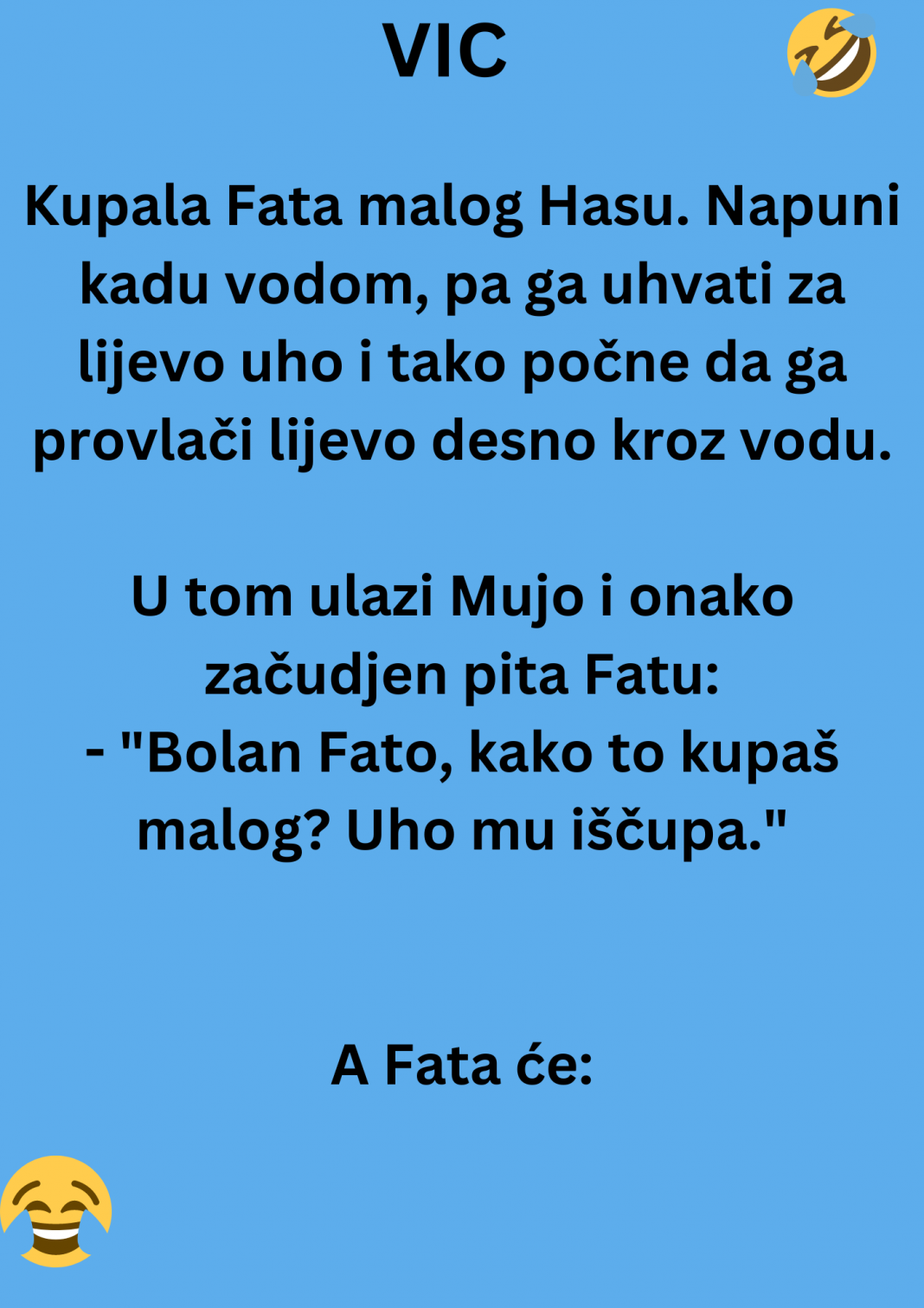 - Na društvenim mrežama nedavno je nasmijala jedna anegdota kada je otac, želeći provjeriti temperaturu vode, dobio od partnerke komentar: „Koja si ti budaletina, hajd ti stavi ruku u ovu vrelu vodu, da te vidim!“ Ova šala savršeno oslikava paniku koja ponekad prati roditelje kada treba okupati bebu, posebno one koji su u tome potpuno novi.